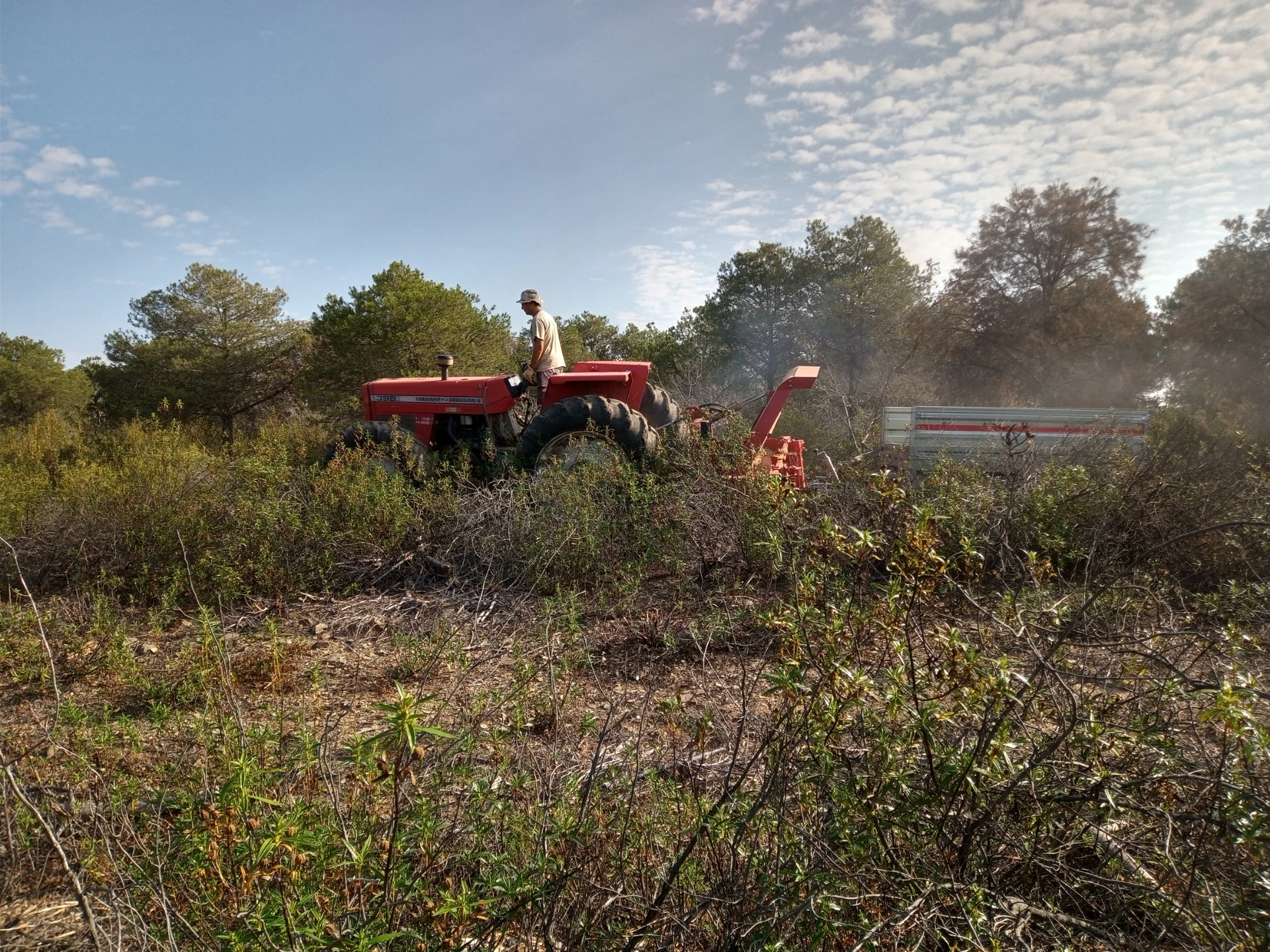 We manage our agroforestry alleys (where we have our growing rockrose), where we coppice the rockrose. After 2-3 years we come back to the same alley. During this time we promote the growth and coppice in other alleys. In summary not only we harvest rockrose, but we also promote its extension. Furthermore we are testing the benefits of turning back to soil the post-distillation material, i.e. not only the management promotes the growth by coppicing, and expansion of the shrub (increasing carbon storage), but we also promote the incorporation of organic matter in the soil.