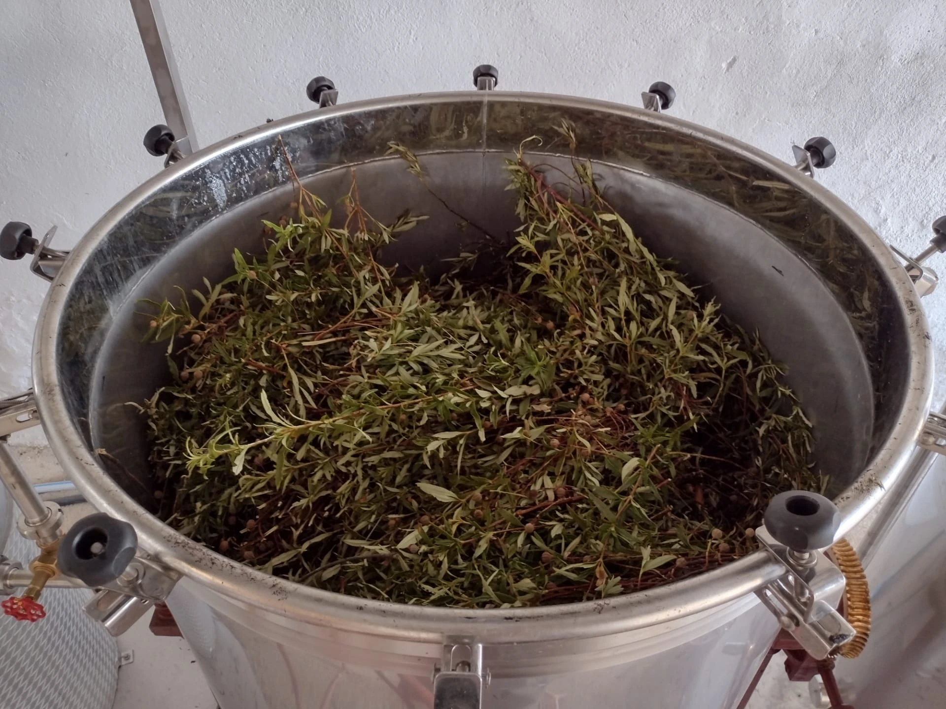 We harvest our own plants in the morning and proceed with the distillation immediately after harvest. When we produce rockrose essential oil, extracted through steam distillation, the vapour that is condensed carrying the oil is then separated by gravity, i.e. the oil goes to surface, the condensed vapour stays on bottom. This condensed vapour, the hydrolate, is then collected and stored immediatelly after the distillation, in oxigen-free packaging to preserve its properties.
